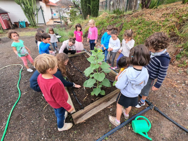 „Rettet die Bienen!”, dieser Ausruf begleitete uns Kinder der Schmetterlingsgruppe mehrere Wochen lang bei unserem Bienenprojekt. Während dieser Zeit waren wir oft im Schulgarten. Wir haben gelernt welche Blumen Bienen gerne mögen und im Anschluss dazu passende Blumensamen eingesät. Ebenfalls haben wir Bücher oder Videos über die Bienen und das Bienensterben angeschaut. Außerdem haben wir Dosen recycelt und daraus Bienen für unser Schulgartenbeet gebastelt. Wir haben einerseits gelernt, dass wir Menschen mitverantwortlich für das massive Bienensterben auf unserem Planeten sind. Andererseits aber auch, dass wir alle etwas tun können damit es den Bienen in der Zukunft besser geht!