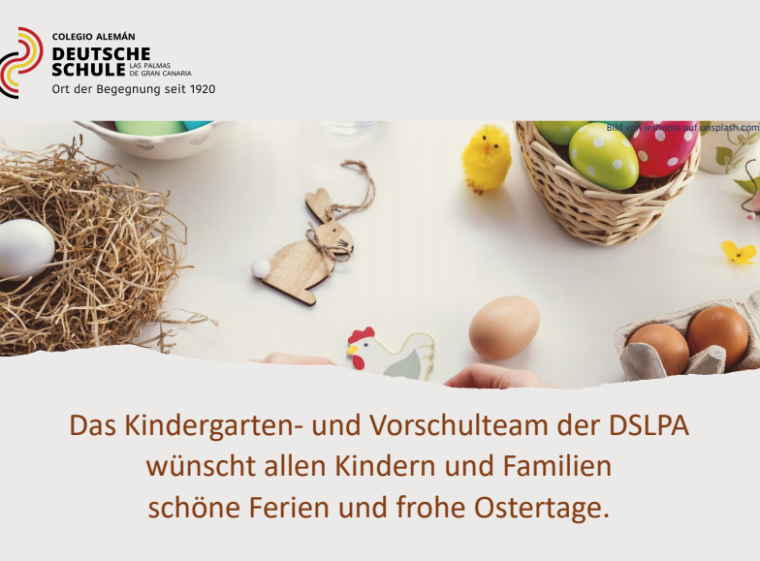 Das Kindergarten- und Vorschulteam der Deutschen Schule Las Palmas de Gran Canaria wünscht allen Kindern und Familien schöne Ferien und frohe Ostertage.