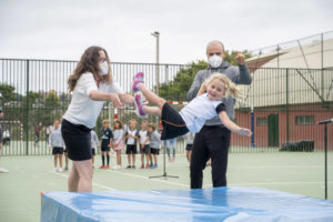 Die Kindergartenkinder nahmen, unter Einhaltung aller COVID-19 Sicherheitsvorschriften, auch an der Veranstaltung teil und verabschiedeten sich von mit roten Herzen von ihren bisherigen Freunden.