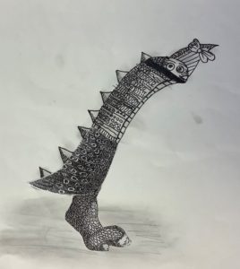 2023-01 Grafik_Fabelwesen als Wasserspeier_Elena Cáceres de Paiz_Kunst Klasse 12a